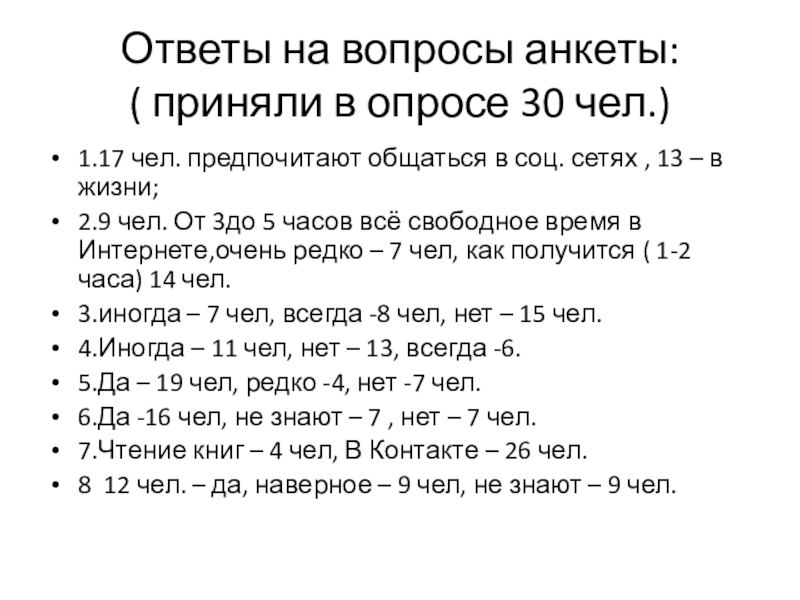 2.9 чел. От 3до 5 часов всё свободное время в Интернете,очень редко – 7 чел, как получится ( 1-2 часа) 14 чел.