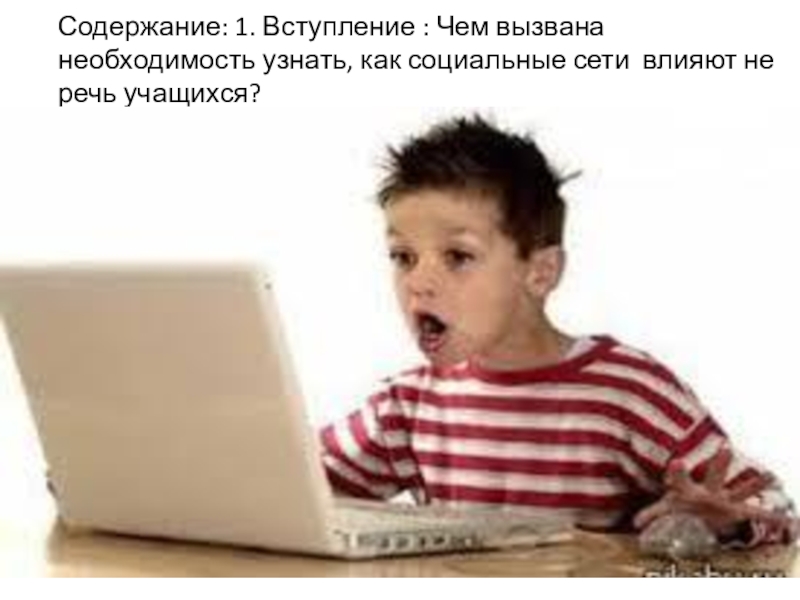 Слайд 2Содержание: 1. Вступление : Чем вызвана необходимость узнать, как социальные сети