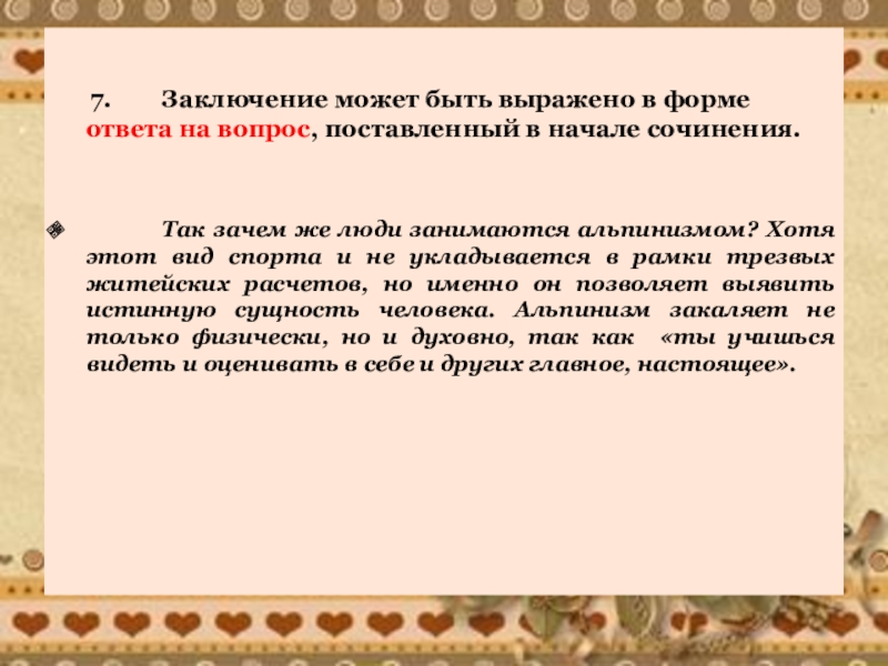 Слайд 3 1. В заключительной части сочинения подводится итог