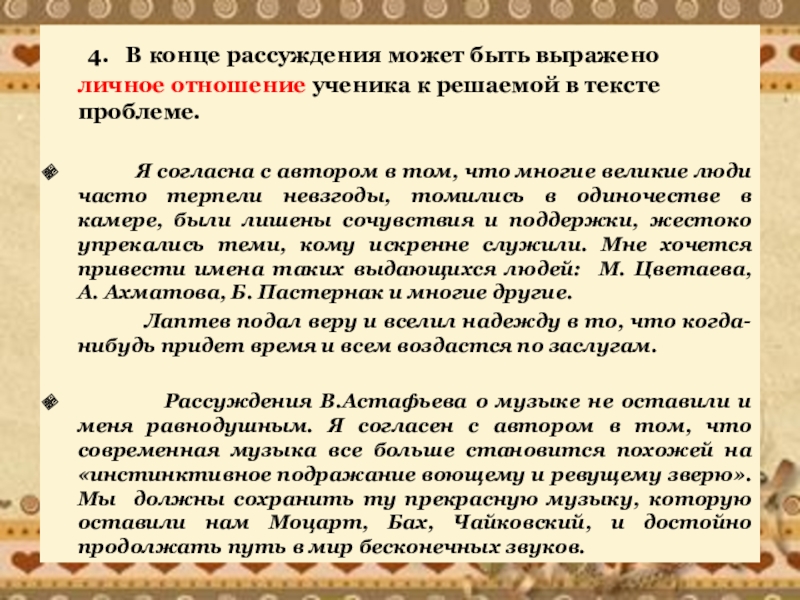 Слайд 6 4. В конце рассуждения может быть выражено личное отношение ученика