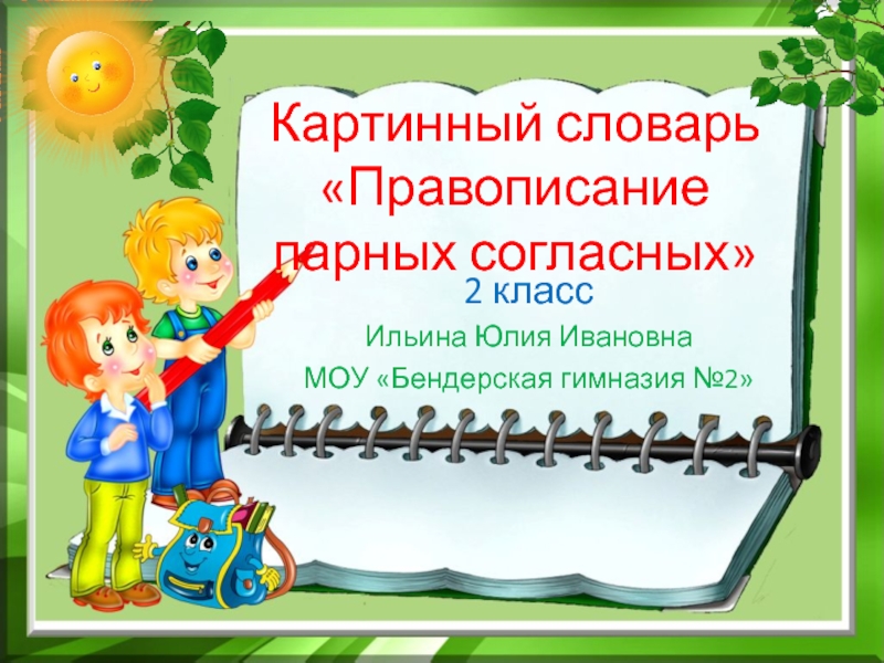 Картинный словарь «Правописание парных согласных»2 классИльина Юлия ИвановнаМОУ «Бендерская гимназия №2»