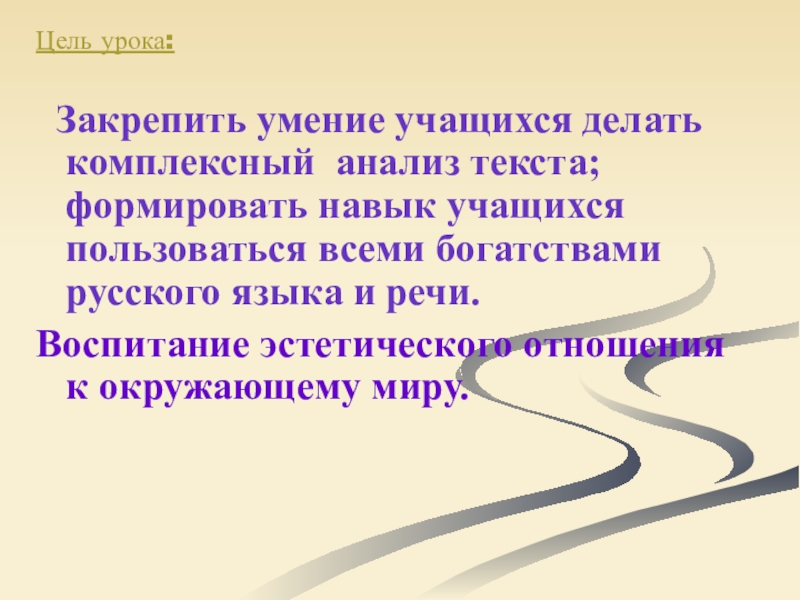 Закрепить умение учащихся делать комплексный анализ текста; формировать