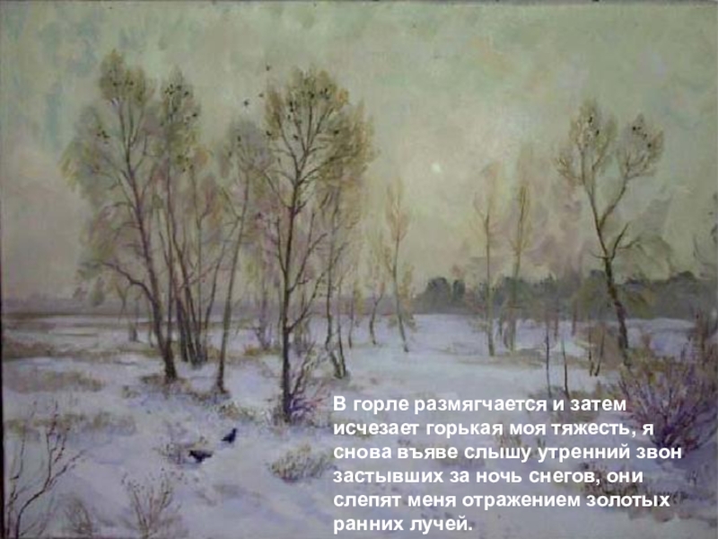 Слайд 8В горле размягчается и затем исчезает горькая моя тяжесть, я снова