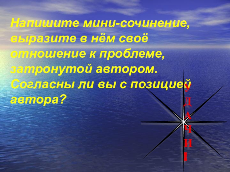 Слайд 19 Напишите мини-сочинение, выразите в нём своё отношение к проблеме,