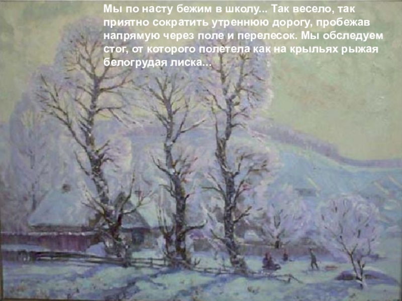 Слайд 9Мы по насту бежим в школу... Так весело, так приятно сократить