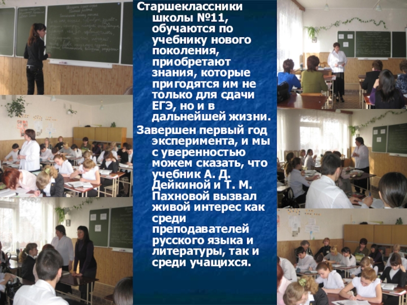 Завершен первый год эксперимента, и мы с уверенностью можем сказать, что учебник А. Д. Дейкиной и Т. М. Пахновой вызвал живой интерес как среди преподавателей русского языка и литературы, так и среди учащихся.
