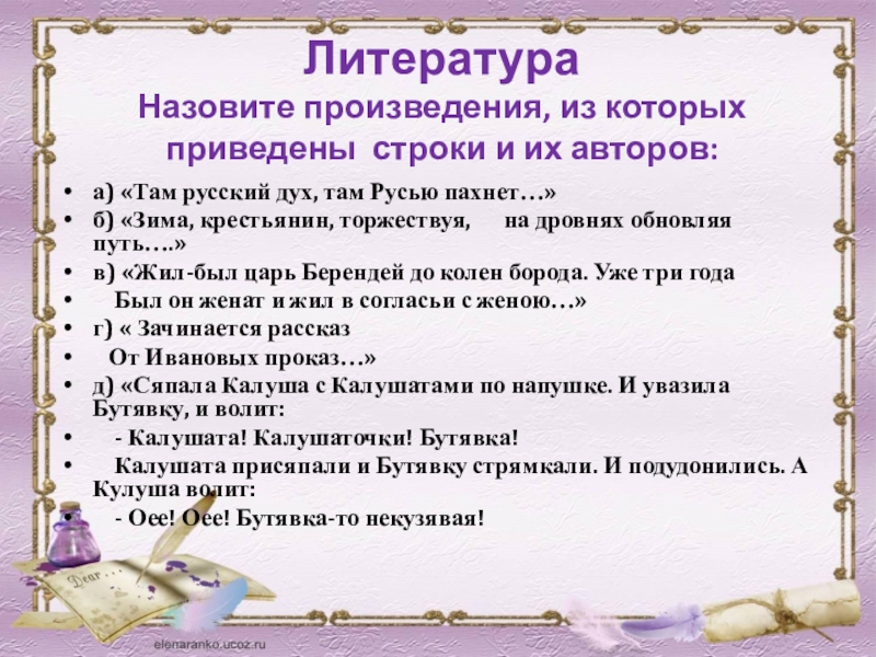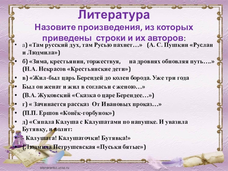 дух, там Русью пахнет…» (А. С. Пушкин «Руслан и Людмила»)