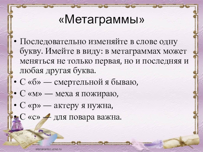 Последовательно изменяйте в слове одну букву. Имейте в виду: в метаграммах