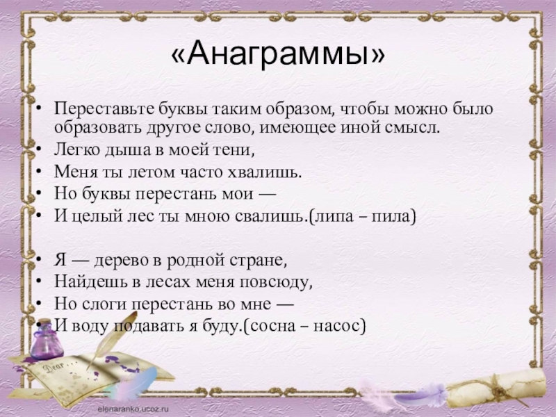 Переставьте буквы таким образом, чтобы можно было образовать другое слово, имеющее