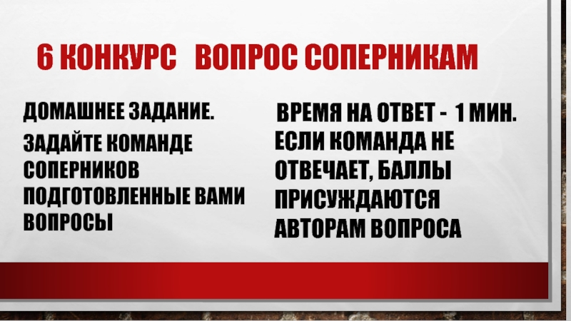 ВРЕМЯ НА ОТВЕТ - 1 МИН. ЕСЛИ КОМАНДА НЕ ОТВЕЧАЕТ, БАЛЛЫ ПРИСУЖДАЮТСЯ АВТОРАМ ВОПРОСА