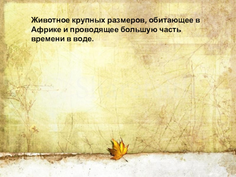 Слайд 23Животное крупных размеров, обитающее в Африке и проводящее большую часть времени