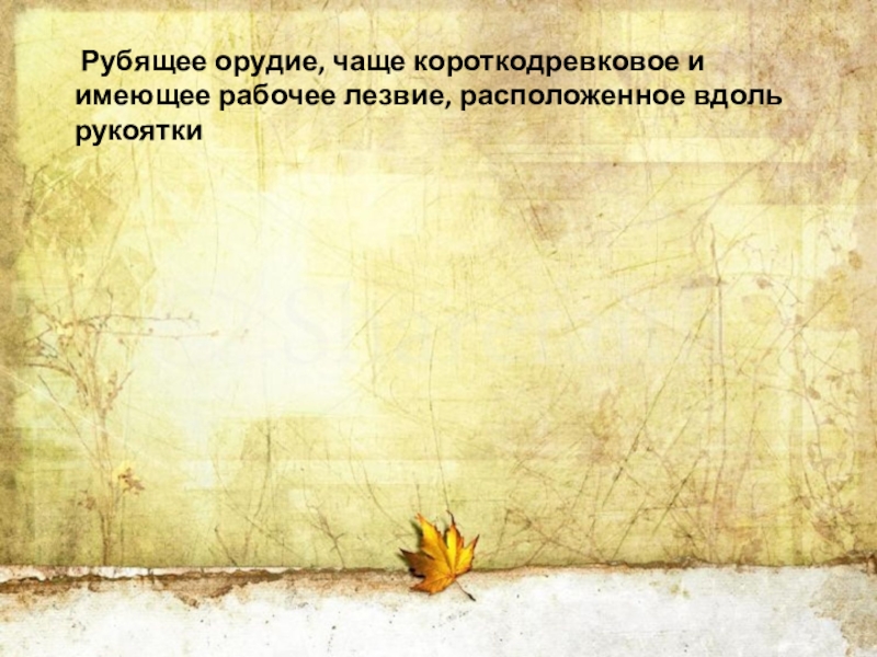 Слайд 13 Рубящее орудие, чаще короткодревковое и имеющее рабочее лезвие, расположенное вдоль
