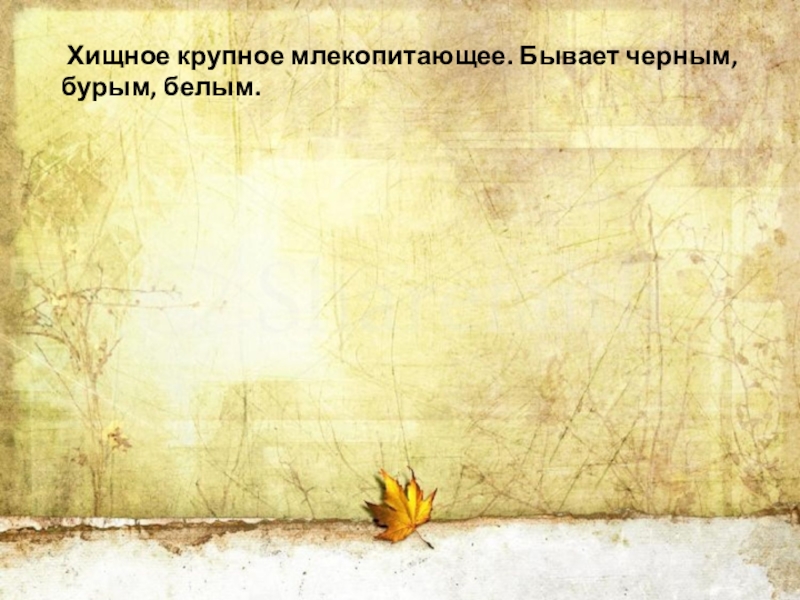 Слайд 17 Хищное крупное млекопитающее. Бывает черным, бурым, белым.