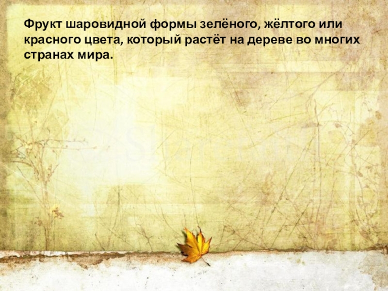 Слайд 29Фрукт шаровидной формы зелёного, жёлтого или красного цвета, который растёт на