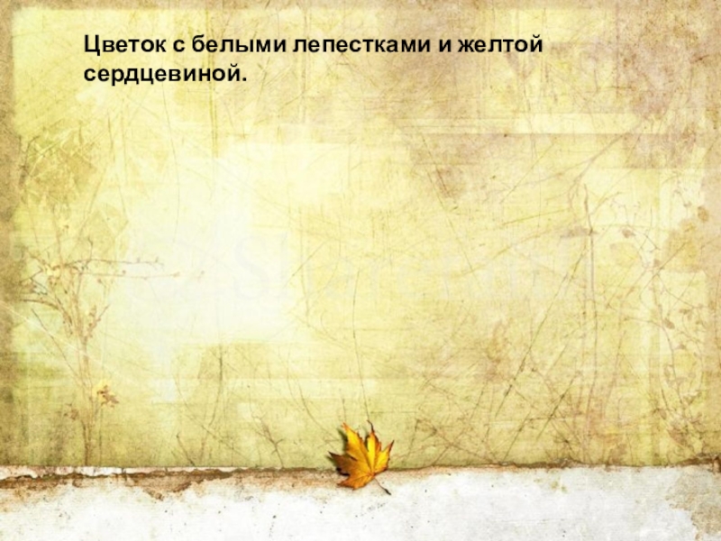 Слайд 21Цветок с белыми лепестками и желтой сердцевиной.