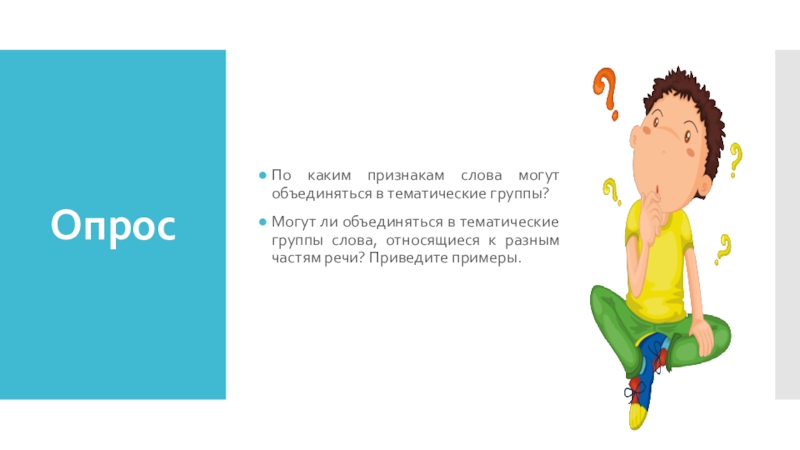 объединяться в тематические группы слова, относящиеся к разным частям речи? Приведите примеры.