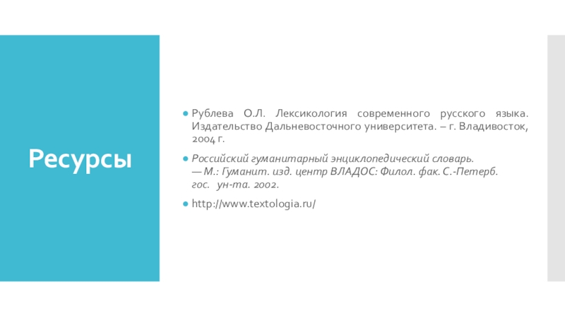 Рублева О.Л. Лексикология современного русского языка. Издательство Дальневосточного университета. – г.