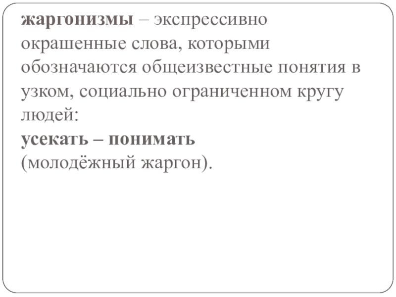 Слайд 15жаргонизмы – экспрессивно окрашенные слова, которыми обозначаются общеизвестные понятия в узком,
