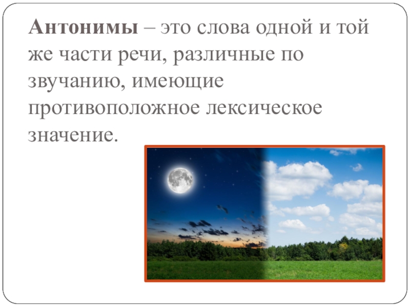 Слайд 7Антонимы – это слова одной и той же части речи, различные