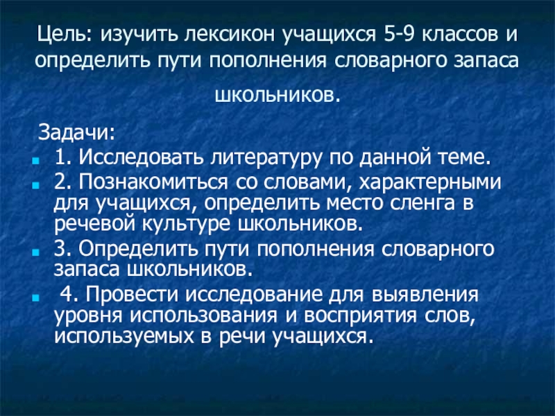2. Познакомиться со словами, характерными для учащихся, определить место сленга в речевой культуре школьников.