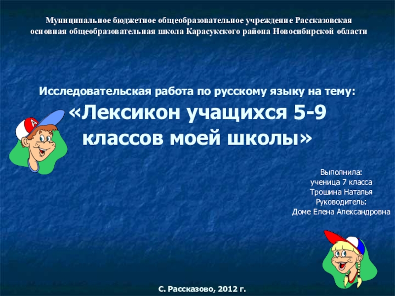 Муниципальное бюджетное общеобразовательное учреждение Рассказовская основная общеобразовательная школа Карасукского района Новосибирской области