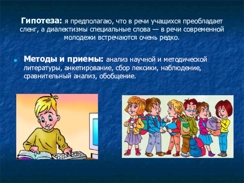Методы и приемы: анализ научной и методической литературы, анкетирование, сбор лексики, наблюдение, сравнительный анализ, обобщение.