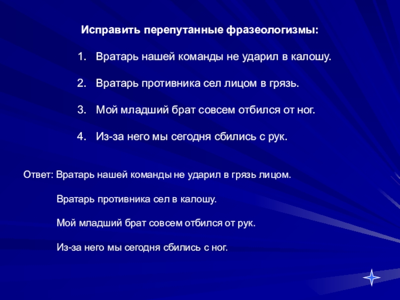 Ответ: Вратарь нашей команды не ударил в грязь лицом.