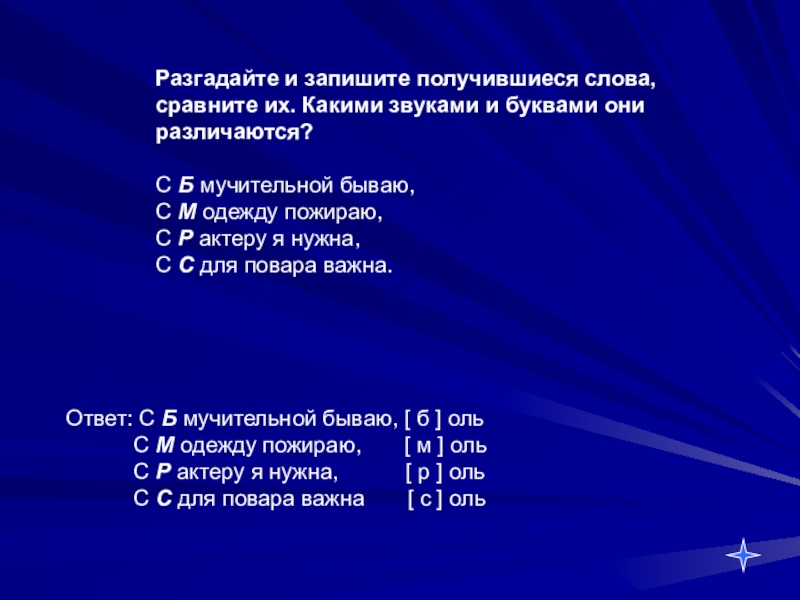 Ответ: С Б мучительной бываю, [ б ] оль