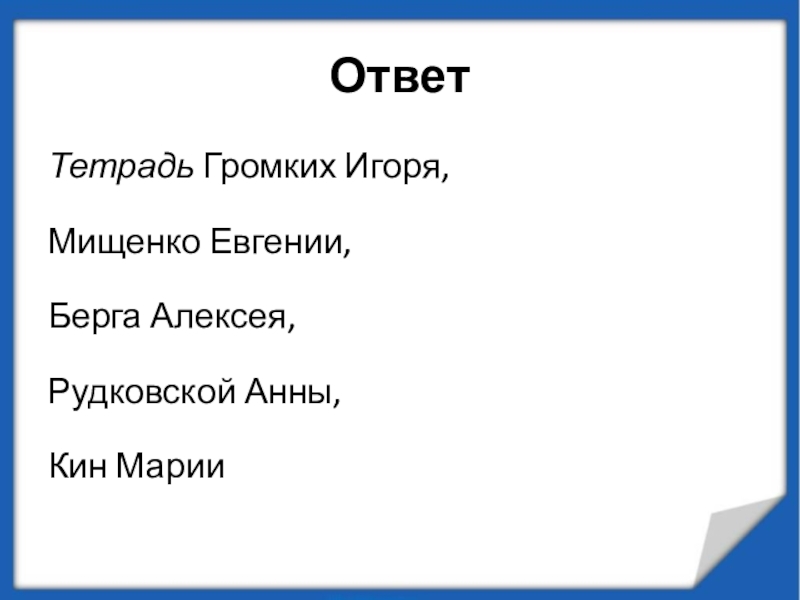 Громких Игорь, Мищенко Евгения, Берг Алексей, Рудковская Анна, Кин Мария?