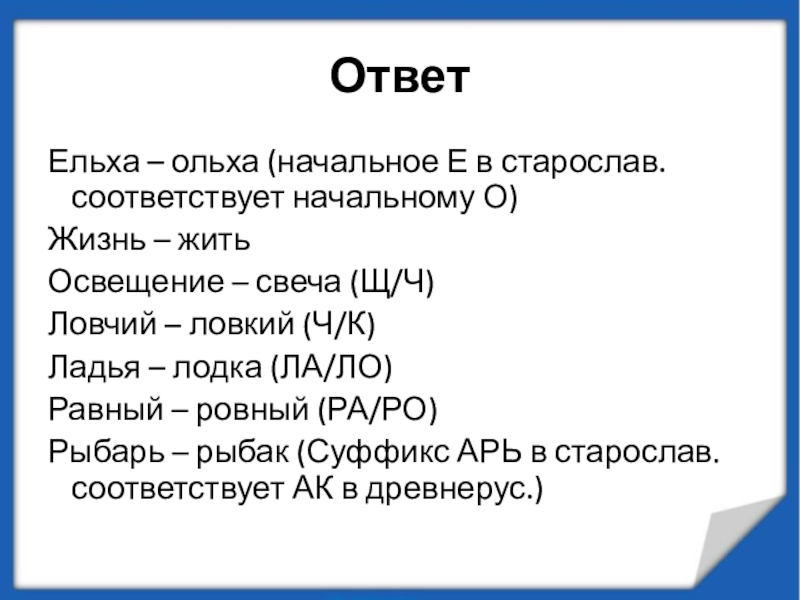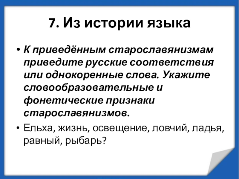 К приведённым старославянизмам приведите русские соответствия или однокоренные