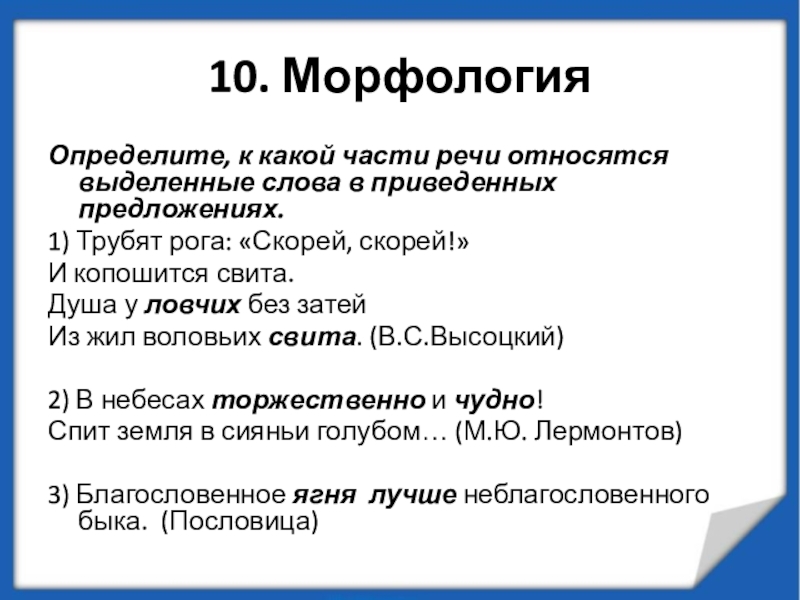 Определите, к какой части речи относятся выделенные слова в приведенных