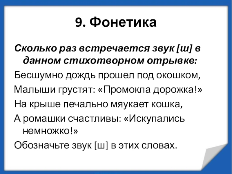 Сколько раз встречается звук [ш] в данном стихотворном отрывке: