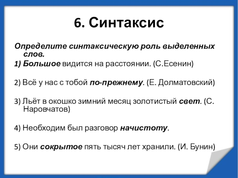5) Они сокрытое пять тысяч лет хранили. (И. Бунин)
