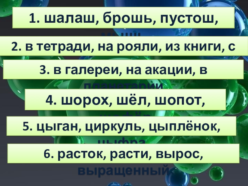 4. шорох, шёл, шопот, шофёр