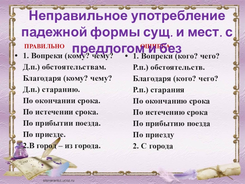 Неправильное употребление падежной формы сущ. и мест. с предлогом и без