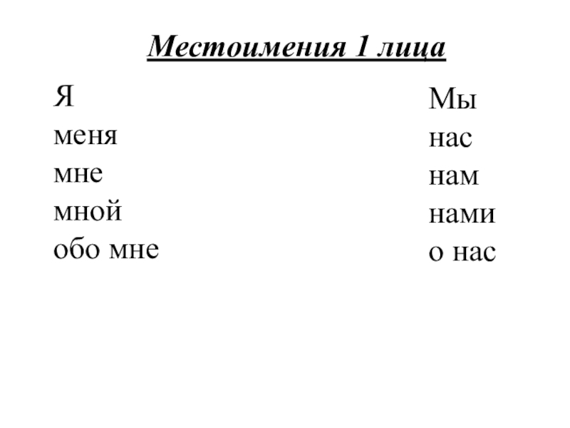 Местоимения 1 лицаЯменямнемнойобо мнеМынаснамнамио нас