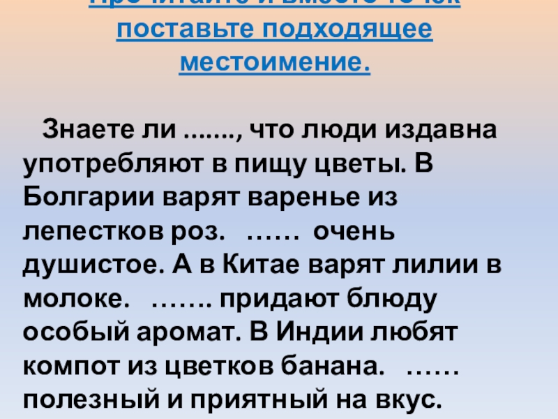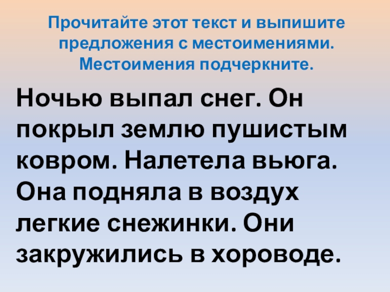 Прочитайте этот текст и выпишите предложения с местоимениями. Местоимения подчеркните.