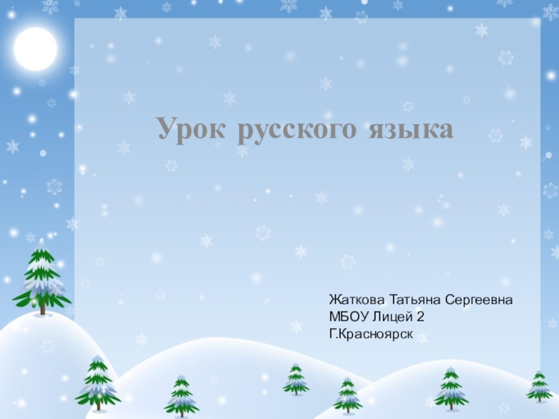 Урок русского языкаЖаткова Татьяна СергеевнаМБОУ Лицей 2 Г.Красноярск