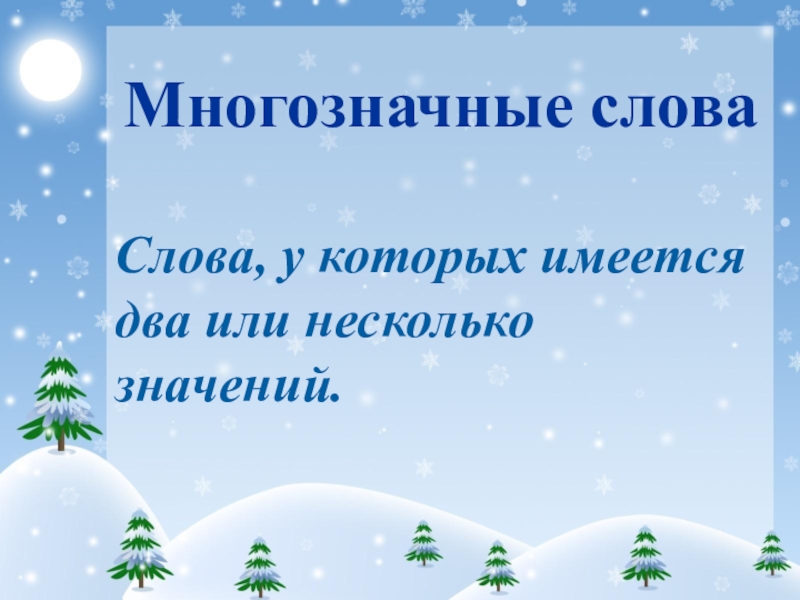 Многозначные словаСлова, у которых имеется два или несколько значений.