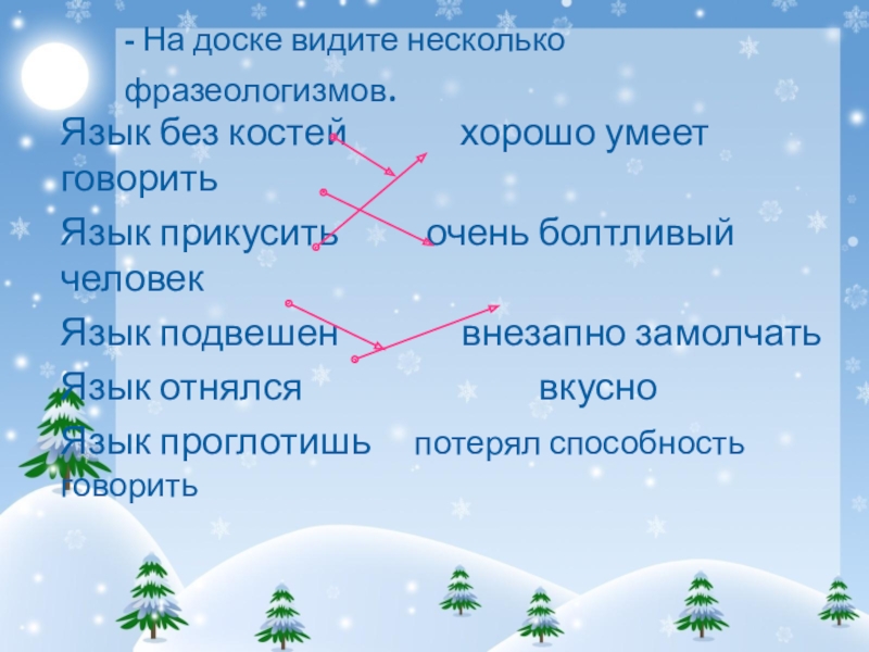 - На доске видите несколько фразеологизмов. Язык без костей       хорошо