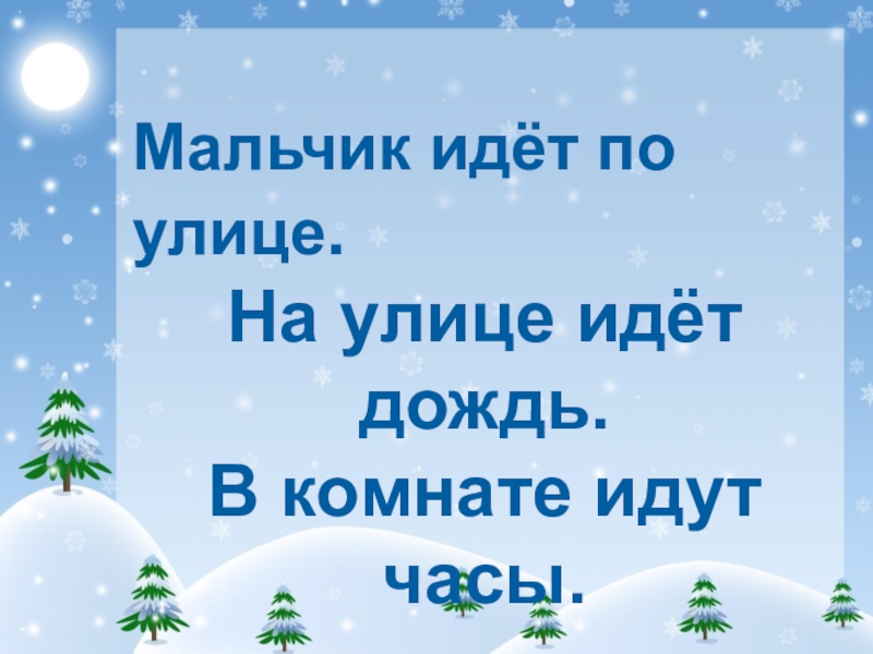 Мальчик идёт по улице.На улице идёт дождь.В комнате идут часы.