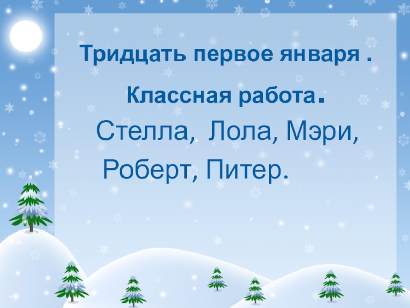 Тридцать первое января . Классная работа.   Стелла, Лола, Мэри,    Роберт, Питер.