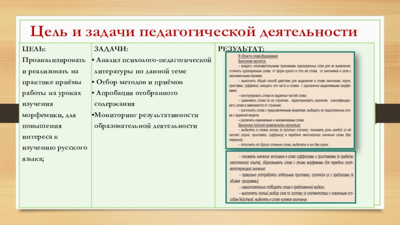 Изучение специфики и роли в языке корня, приставки, суффикса, окончания.