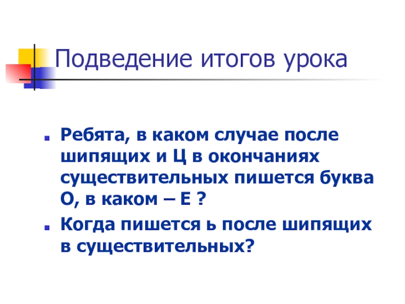После шипящих и Ц под ударением в окончаниях имен существительных гласный звук обозначается буквой О, в безударном положении – буквой Е.