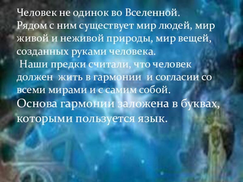 Наши предки считали, что человек должен жить в гармонии и согласии со всеми мирами и с самим собой.