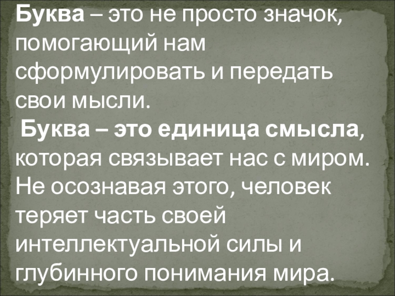 Слайд 16Буква – это не просто значок, помогающий нам сформулировать и передать