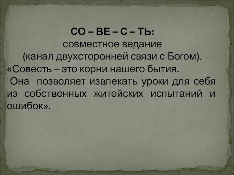 «Совесть – это корни нашего бытия.