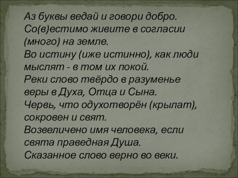 Слайд 8Аз буквы ведай и говори добро.