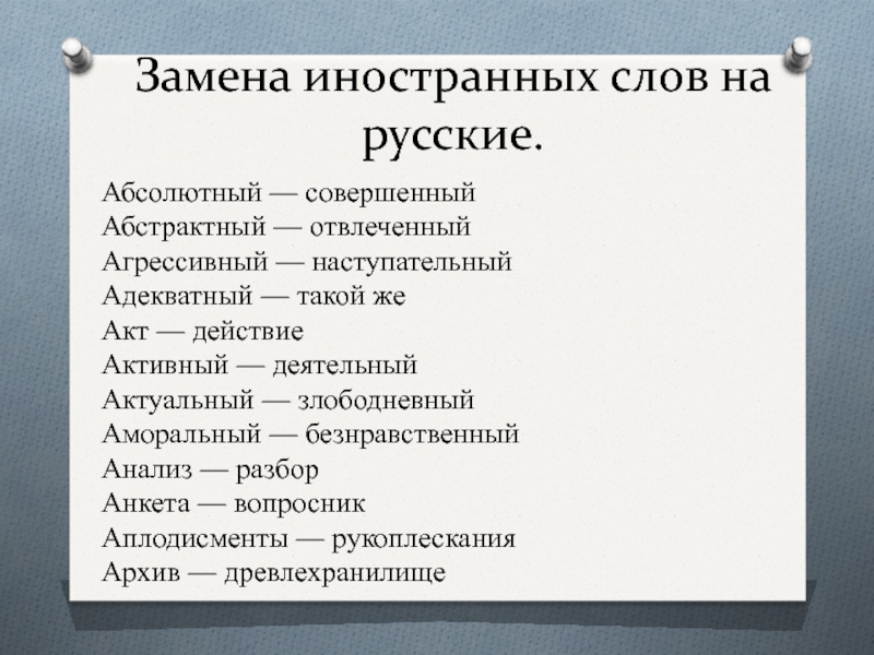 Проанализировать существование заимствованных слов в русском языке и объяснить необходимость их