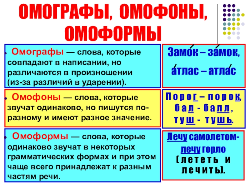 Омографы — слова, которые совпадают в написании, но различаются в произношении (из-за различий в ударении).